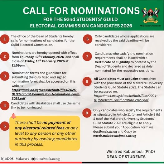 • Makerere University 76th Graduation Ceremony Dates: 24–27 February 2026