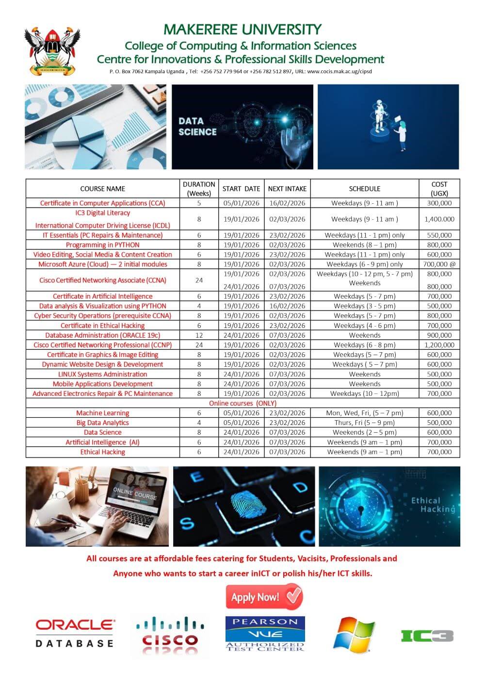 CoCIS_Admin Posted on January 19, 2026 No Comments Call for Applications – CIPSD Short Courses January, February & March 2026 Intakes Call for Applications – CIPSD Short Courses January, February & March 2026 Intakes