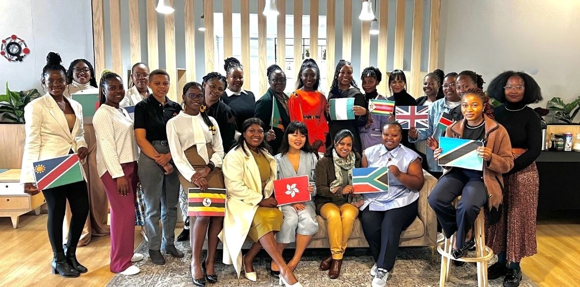 Front row 1st with Uganda flag Christine Kikome with other competitors in a group photo